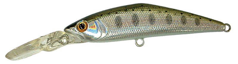 今までに攻め切れなかった落ち込み付近から深度1mを超えるデッドゾーンをダイレクトに攻略する為のヘビーシンキングディープミノー。 6gの自重で沈め、巨大リップによる強制急速潜行で未知なる領域まで一気に到達させ、リーリングによる小刻みなウォッブ&ロールの振動でルアーの存在をアピール、深みに潜むトラウトをダイレクトに誘います。