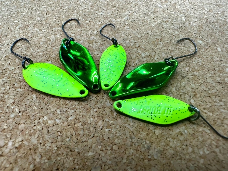 出勤前に釣り場へ毎日のように通い色々なカラーを試した結果たどり着いた色がグリーン。