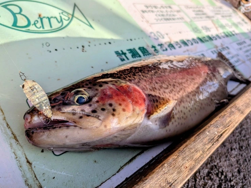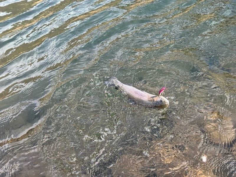 上がってきたのは 45cmのニジマス