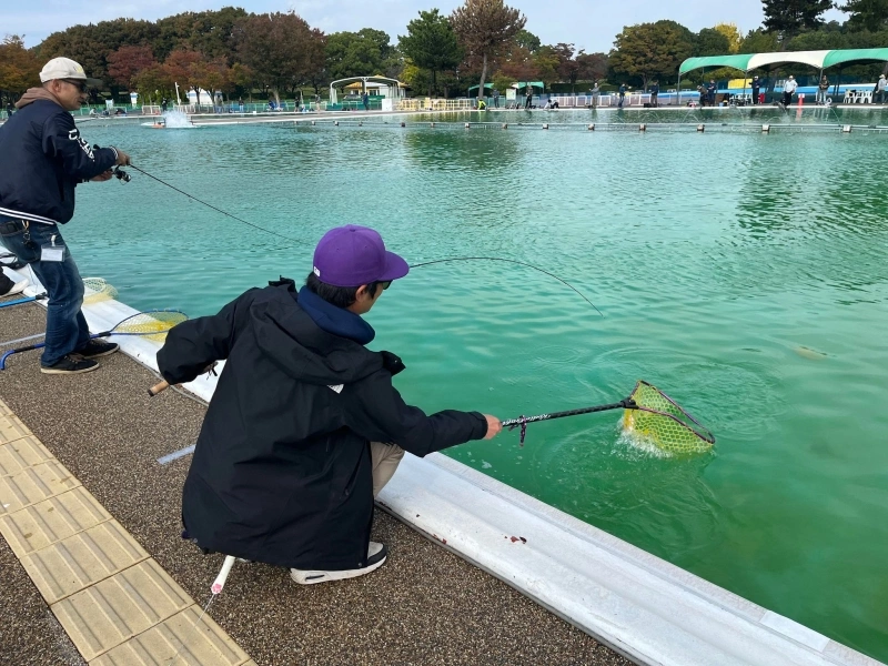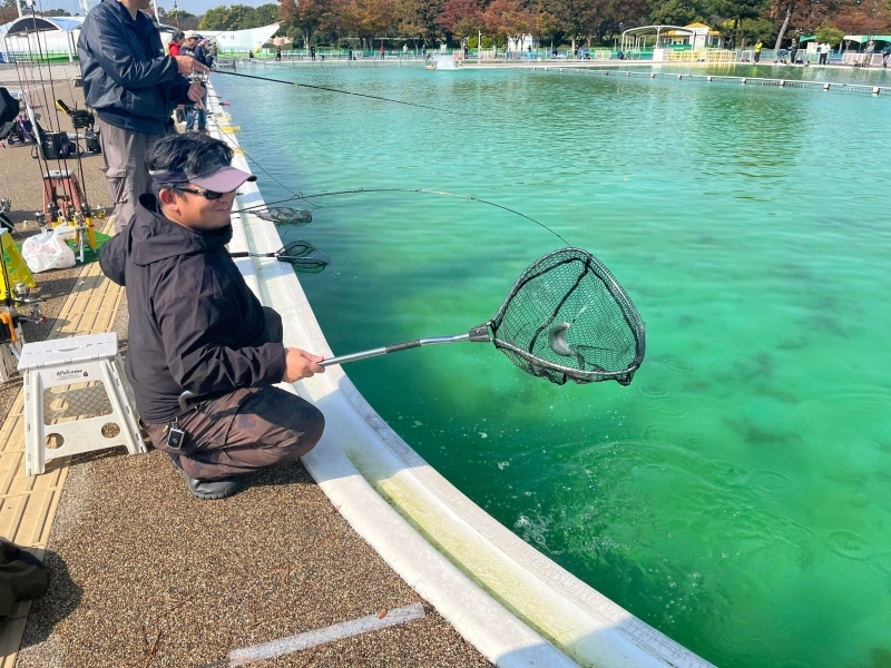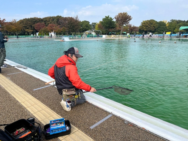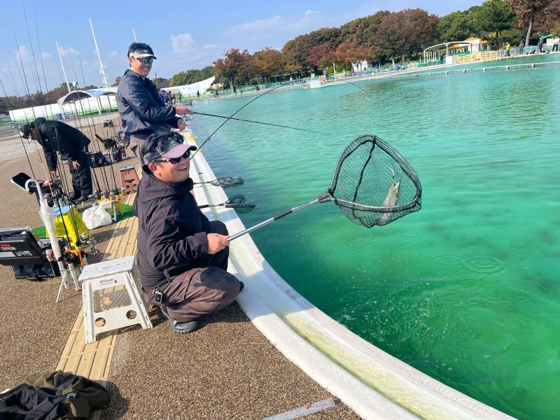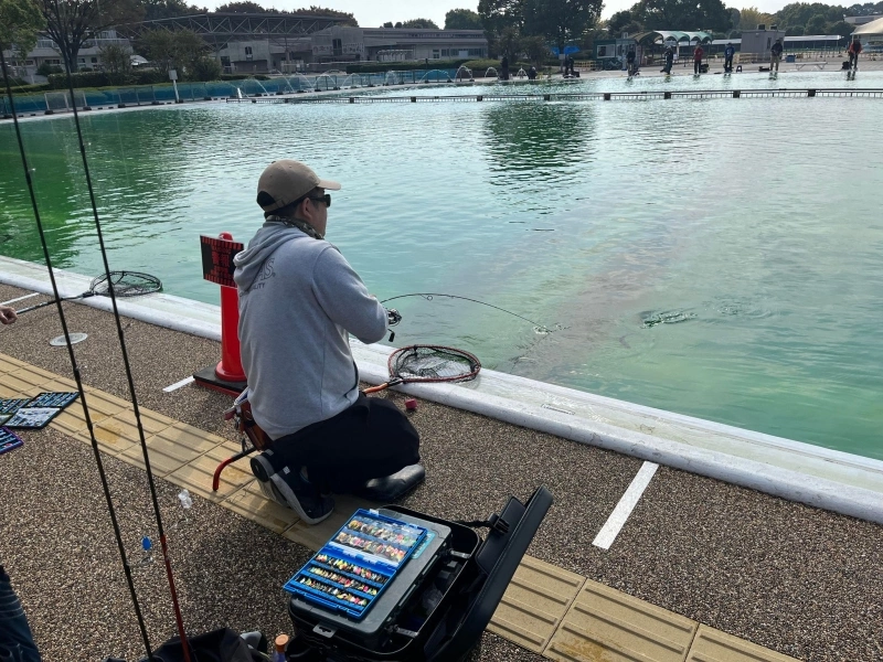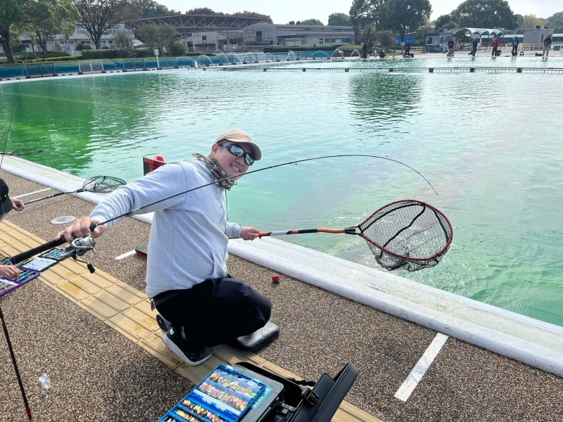 まだ水も濁っていないのでチェイス→ヒットが見えるため普段のプールトラウトとは違う楽しみもあります。