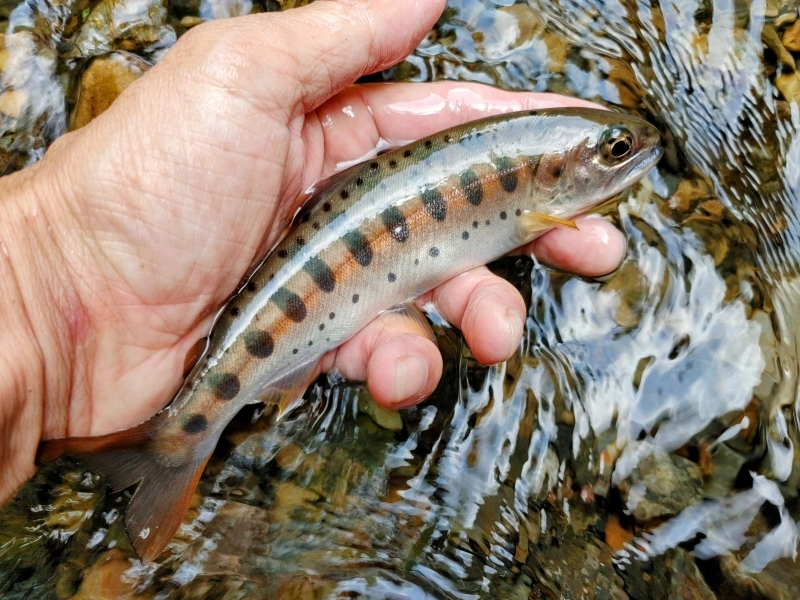 ここではサイズは望めませんが、丸いパーマークを纏った個性的なヤマメが釣れるので