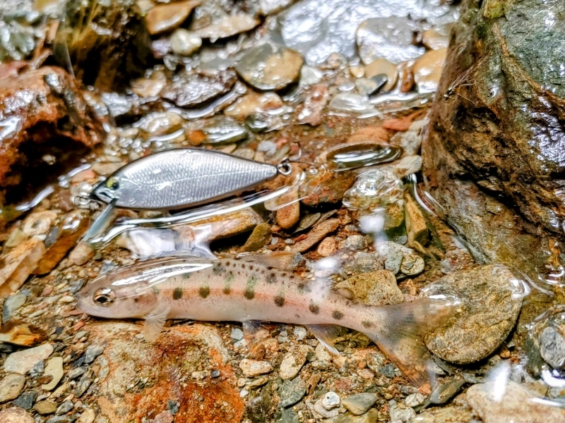 そして小さな沢程、雨の恩恵を味方に付けるとルアーを通せる距離が長くなり釣り易くなります。