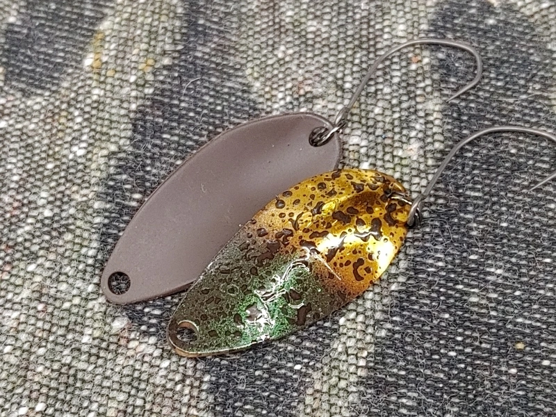 表裏で明滅を作り、ロイヤルゴールドで寄せて長続きし、グリーンマジョーラでアピール力をアップさせ、飛ばしを入れる事で魚に口を使わせるカラー!