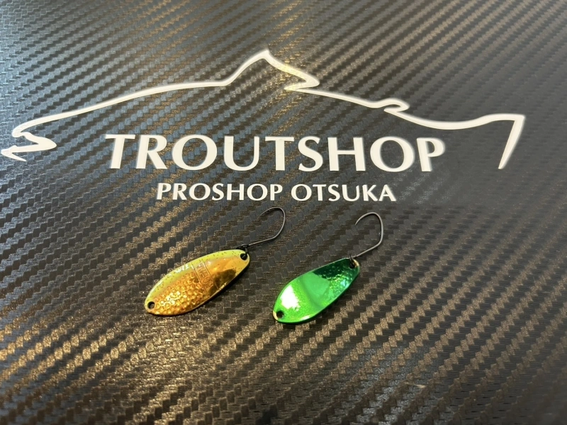 汎用性の高いセカンドカラーで、棚がボヤけていても、表のロイヤルゴールドで寄せて、表裏の明滅で食わせ、さらにテールの蛍光オレンジがバイトマーカーとなっています。